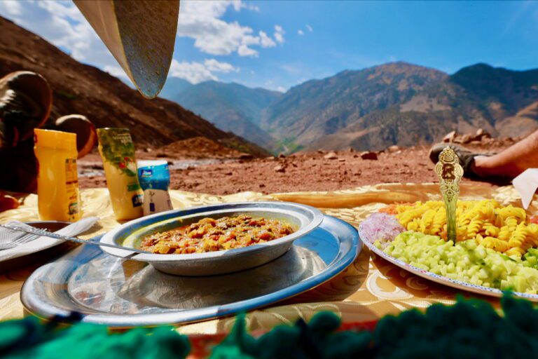 Lúxus á miðri leið: Á öllum fimm dagsleiðunum er eldaður hádegismatur á miðri leið. Múlasnar bera matinn, en farangur er fluttur á milli staða með bílum.