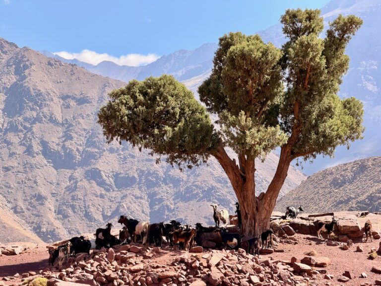 Veðurfar: Hitastig er yfirleitt um 15-20°C í fjöllunum, en nær 30° í Marrakech.